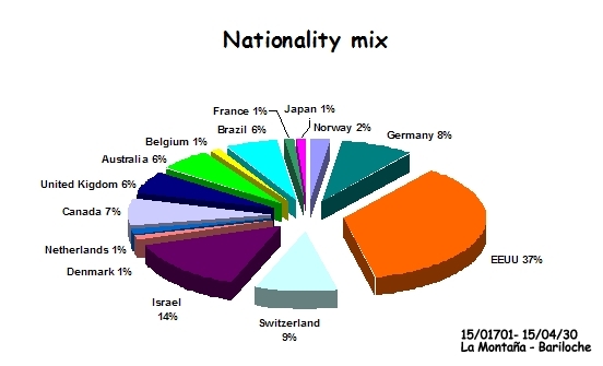 At La Montaña Spanish School, student population varies throughout the year. We are proud to ensure an excellent mix of nationalities and the opportunity for students to make friends from all over the world while learning Spanish in a relaxed atmosphere! Each year students come from over 18 countries, with a well-balanced mix of students from US, Israel, Switzerland, Germany, Canada, Australia, Brazil, UK,...